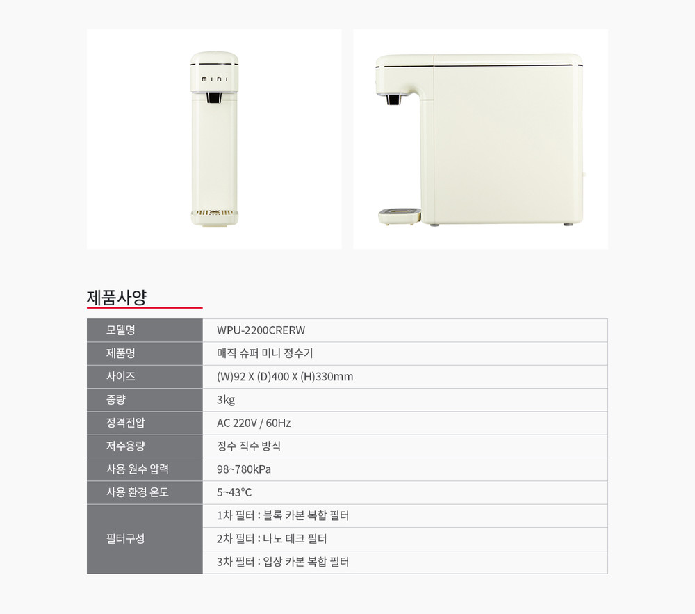미니 직수 정수기(정수전용)